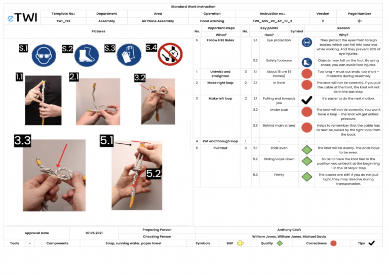 Step-by-step process documents with images and diagrams for assembly, machining, and operations—ensuring clarity and consistency on the floor.